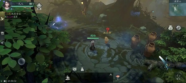 1、在片头渡劫失败后我们会轮回到北冥山这里。跟大部分游戏一样,任务npc头上永远是一个红色问号,直接交互即可。