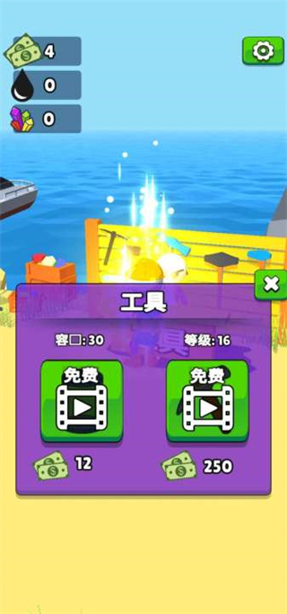 4、在宝石的旁边有工具,这里我们可以对自己的工具进行升级,主要先有钱。