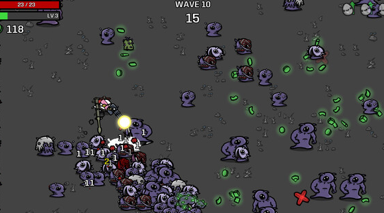 5、收集材料以获取经验,并在敌人一波波之间从商店获取物品。