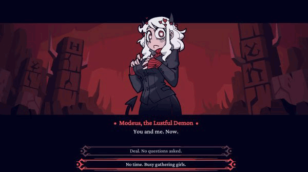 1、玩家将扮演坠入爱情地狱的主角,尝试取得地狱女孩们的芳心,逃出地狱。