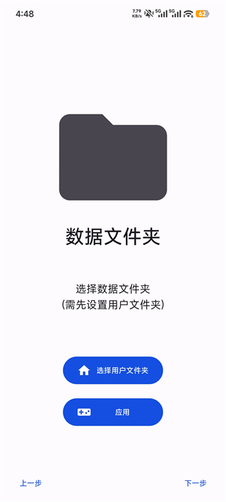 下一步会要求选择应用文件夹,这里指的就是你的游戏所在的文件目录。
