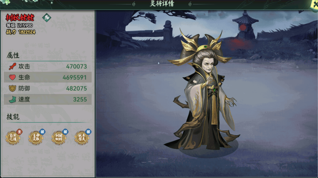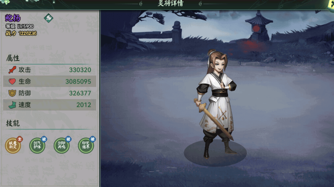 核心技能:「妖魔斩灭」对妖族灵将有额外伤害,副本可用。