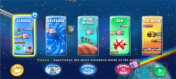 1、双击打开彩虹猫迷失太空游戏,玩家可以点击猫咪头像的按钮进入游戏游玩;