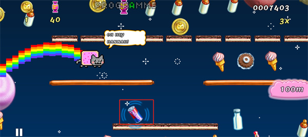 4、游戏中猫咪会自己向前移动,玩家可以通过点击屏幕来控制猫咪的跳跃,连续点击还可以进行二段跳;