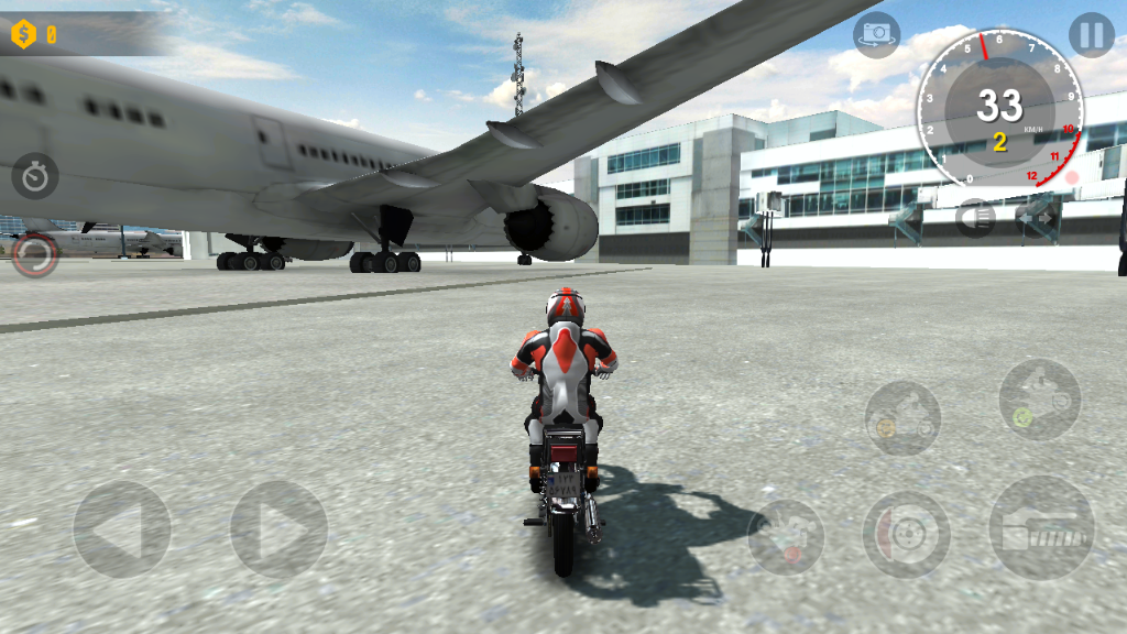 6、进入游戏后,左边控制摩托车的方向,右边则控制前进以及其他的操作;