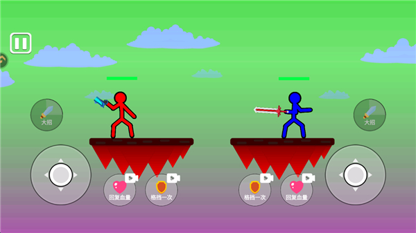 2、现在双人玩家就可以选择各自的火柴人武器以皮肤;