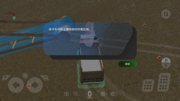 6、一顿操作之后,成功将卡车倒车在指定位置,然后会有挖出来的泥土装进来,让我们运到别的地方