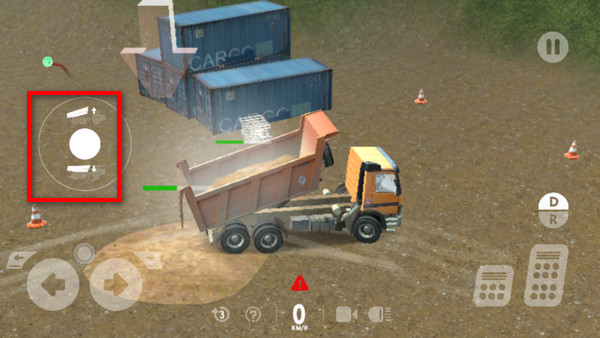 9、此时会出现倾倒泥土的轮盘,我们可以自由操作上下倾倒卡车斗子