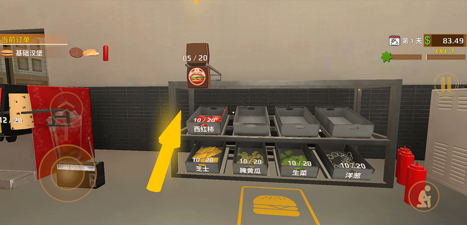 7、最后,将完成的汉堡装盘端到顾客面前,即可完成当前订单。收下顾客的满意笑容后,就能继续接待下一位食客啦!