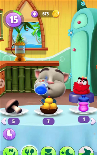 买了婴儿药水后,它会出现在我们的食物盘中,就可以随时让宠物喝了。点击婴儿药水,宠物就会喝下去,这时候就会出现特效,就像电视剧里神仙变身的特效一样,宠物瞬间就会变成婴儿,大家想要的可爱状态也就又回来了。