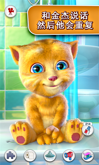 1、 跟金杰一起玩:喂养他、戳他、挠痒痒,听到可爱的笑声。2、 跟金杰说话:跟这只小猫咪说话,他会用他可爱的声音重复你的话。