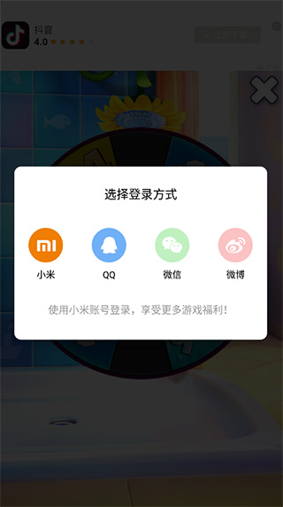 1、进入游戏后,用户需要登录,游戏支持小米号、QQ、微信号、微博登录;