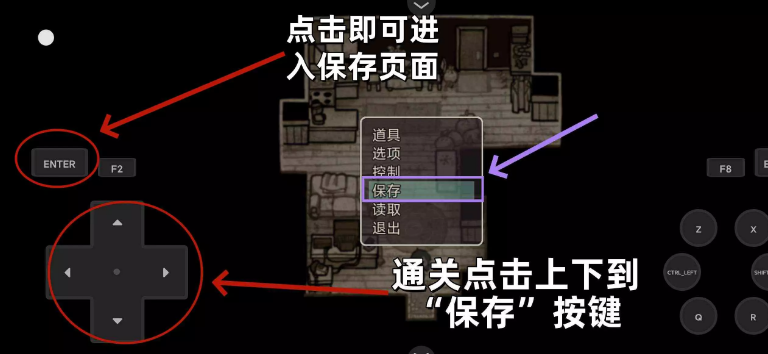 进入后,通过方向键盘控制我们要保存的存档位置,选中后点击“ENTER”即可完成保存,完成保存后点击“ESCAPE”即可返回游戏(如下图所示)。