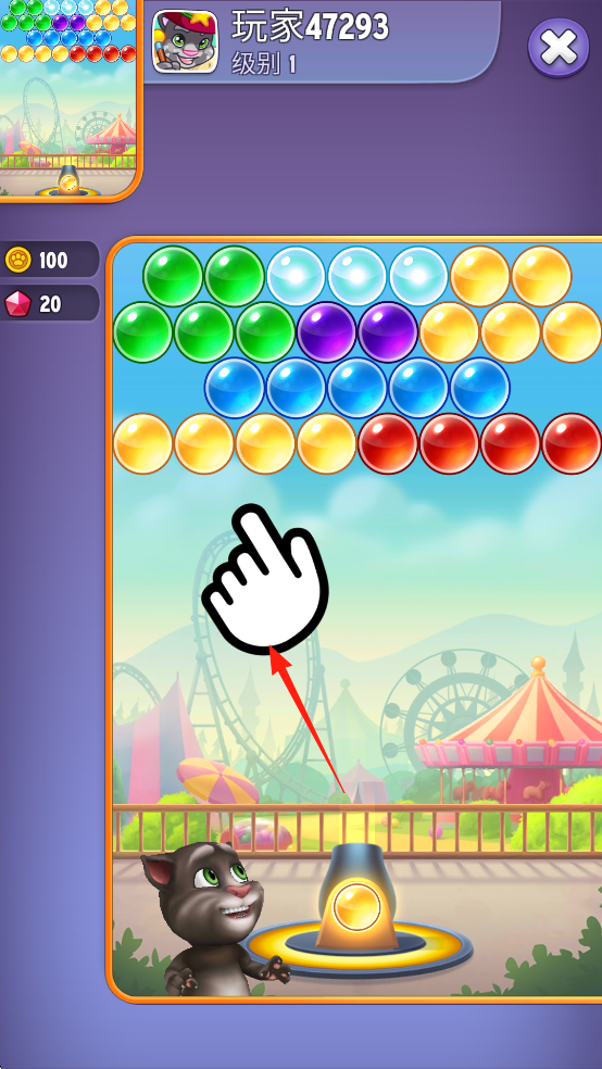 3、移动炮台发射泡泡来消灭上方相同颜色的泡泡球