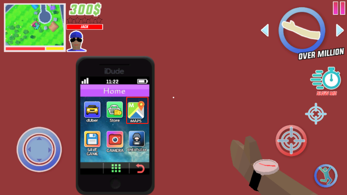 6、之后可以点击左边的手机按钮,再点击地图,便可查看整个地图,以及自己的所在位置;