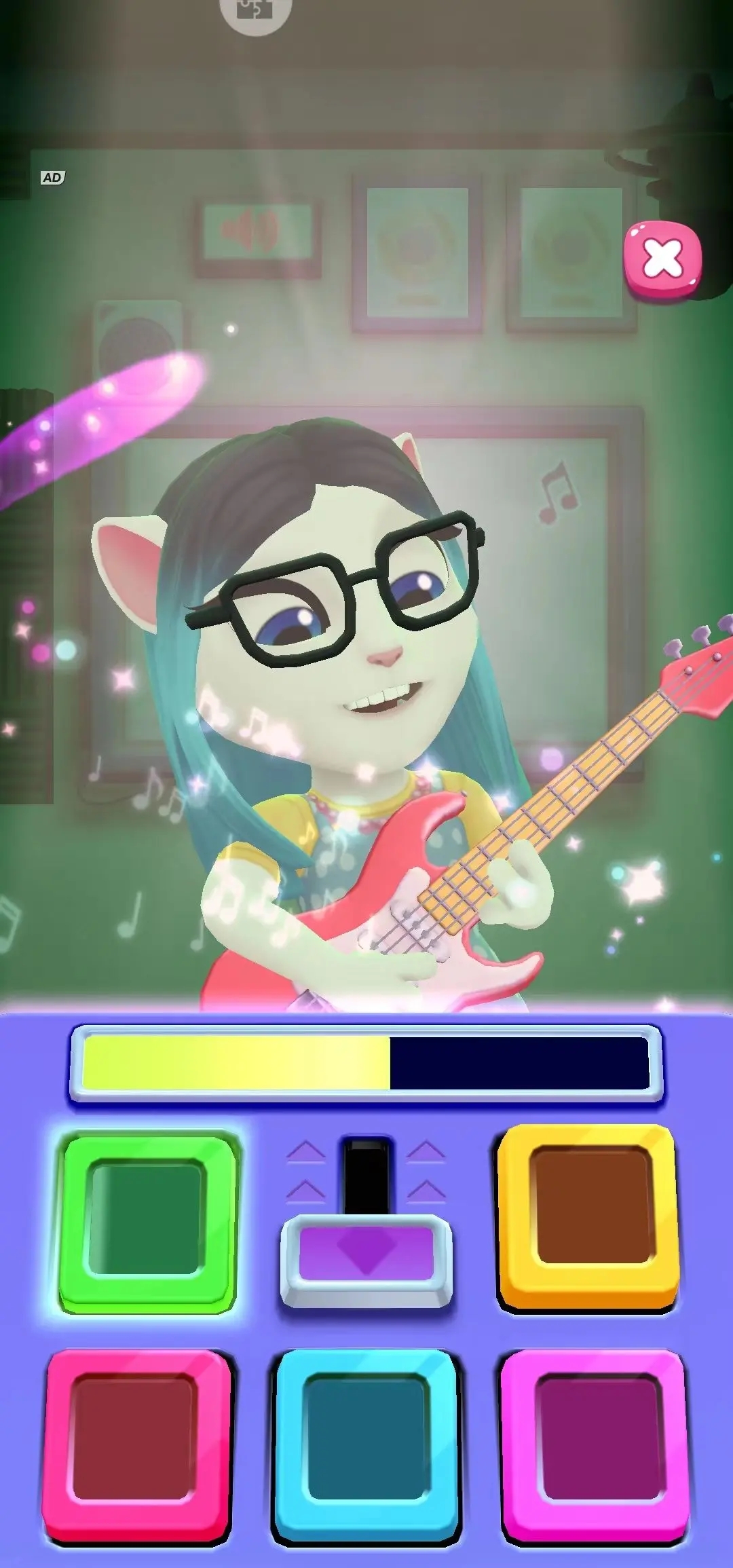 那么吉他是怎么游玩的呢?在游戏中的吉他可不是随着音乐去凭感觉弹的哦,我们需要留意游戏下方几个彩色的格子,当格子中有白色的闪光出现的时候,我们再去点击以下,同时,安吉拉弹吉他也会出现非常好看的特效。