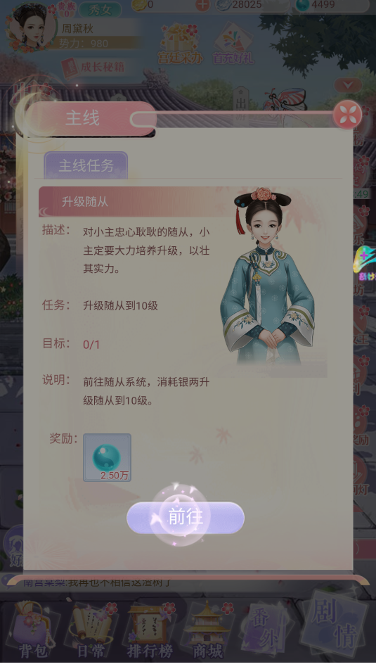 各路随从养成,委派差遣,培养升级,精于妆容或工于心计,一切由你做主!