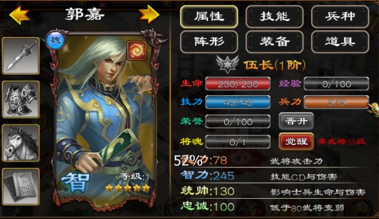 前期非常好用的智将,大招用的好,最少可以秒杀2个,到后期敌方兵太多,大招不太好控制。不过多尝试,掌握了要领之后,依然可以打残敌方。推图中比较难缠的角色都可以交给郭大大去解决,主力阵容必不可缺。