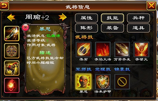 【军师技:暴怒,冷却缩短!】 周瑜的军师技是小幅缩短己方武将技能冷却时间。虽然只是小幅,但是冷却时间缩短之后,就算只能放多一次大招,战果也会大不相同,尤其是高手过招,有时候就是差那么一点。所以这个技能还是很实用的。