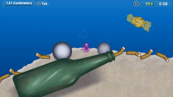 4、通过移动小章鱼进行吃垃圾,时间花的越少评价越高