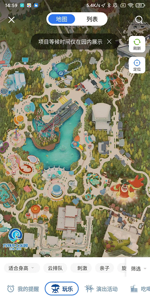 项目、演出、餐饮、商店、游客服务、洗手间六大地图信息,实时导航找路游园更轻松。
