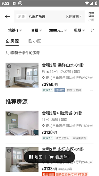 2、随后输入你想租的地方和价位点击【搜索房源】
