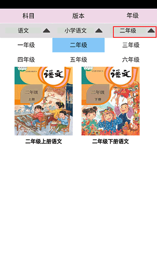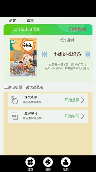 2、点击课本,进入相关详情页,可以进行课本点读和生字学习