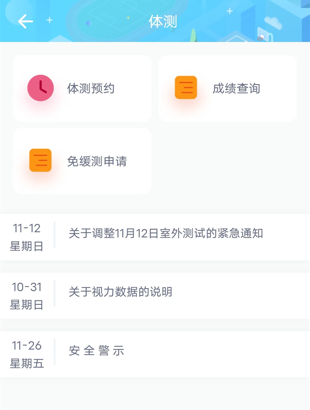 选择APP“体测预约”,打开右上角“我的预约”可查看成功预约的项目。