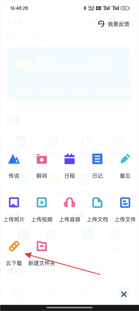 备注:「雷达」功能仅支持在115手机端(Android版和iOS版)进行,暂不支持115电脑端。