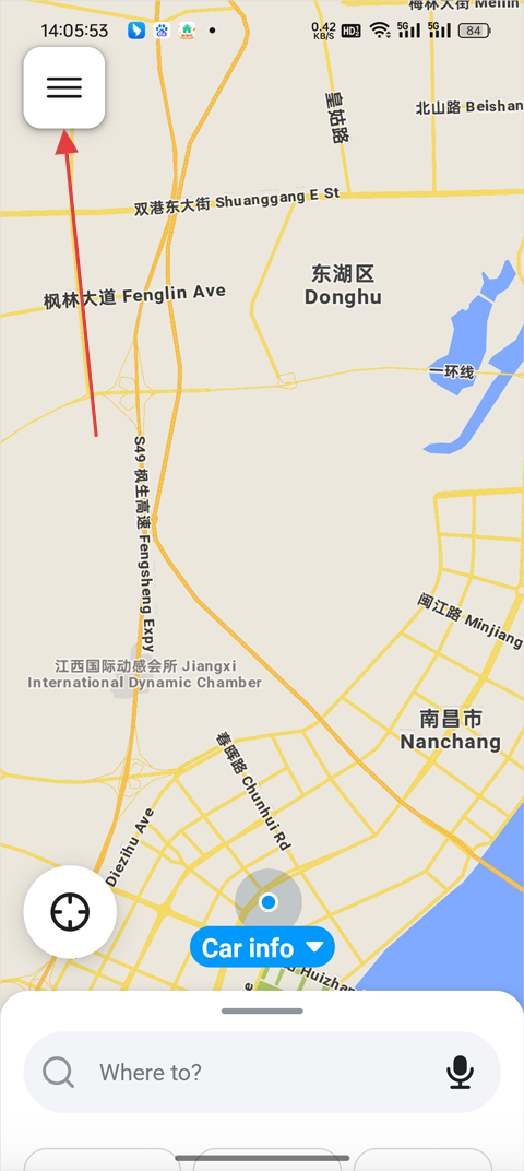 1、首先打开Waze应用,点击主界面左上角的“三条横线”图标,进入功能菜单。