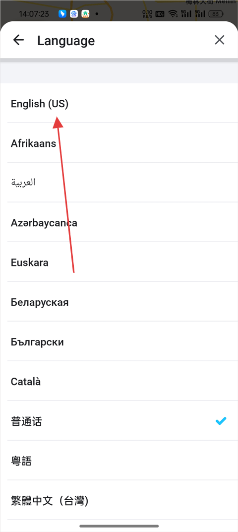 5、在语言列表中找到并选择【English】,系统会自动切换成英文语音播报。