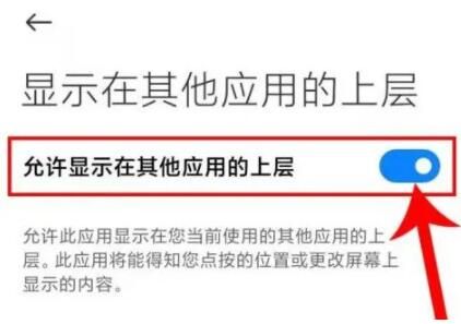5、点击“允许显示在其他应用的上层”的右侧按钮开启。