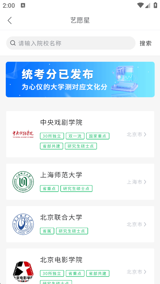 艺愿星免费版app是一款专注于服务艺术类考生的智能志愿填报平台,致力于通过科学的数据分析与专业指导,帮助每位学子找到最适合的升学路径。若在填报过程中遇到困惑,用户还可预约一对一在线咨询,由经验丰富的专家提供从冲刺目标到保底选择的全程规划。此外,平台内置的智能算法能基于用户输入的专业课分数、文化课成绩及位次信息,快速进行概率测算与风险评估,为主流艺术院校的校考与录取提供数据参考,让志愿决策更加清晰高效,助力每一位艺术生走好升学路上的关键一步。